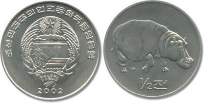 Aluminum Bullion In 2002 North Korea released a series of 12 half chon coins. Although the official exchange rate in North Korea is 141 won to the U.S. Dollar, the market rate is 2500 to 3000 won to the dollar (source: CIA World Factbook). This means that the half chon coins have an official value of .0035 cents and a spending value of less than .0002 cents, making them one of the few aluminum coins were the intrinsic value far exceeds it's face value. "Hippos are not found